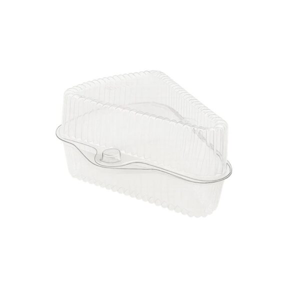 Envase plástico transparente con diseño de bisagra, ideal para proteger y exhibir alimentos u otros productos. Su cierre seguro mantiene el contenido fresco y en buen estado