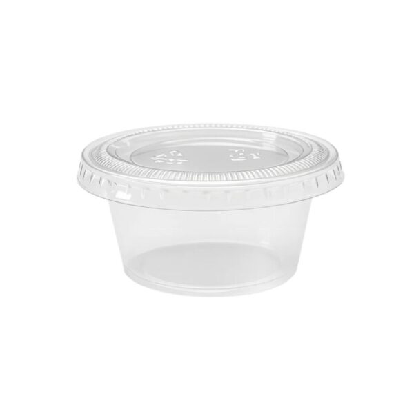 Envase plástico, ideal para muestras, salsas o porciones individuales. Resistente, higiénico y práctico para degustaciones o servicio para llevar. Contenido: 2 oz