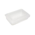 Envase plástico transparente y resistente, en medida “0-4 A” , ideal para la presentación y protección de diversos productos como frutas, repostería, verduras u otros artículos.